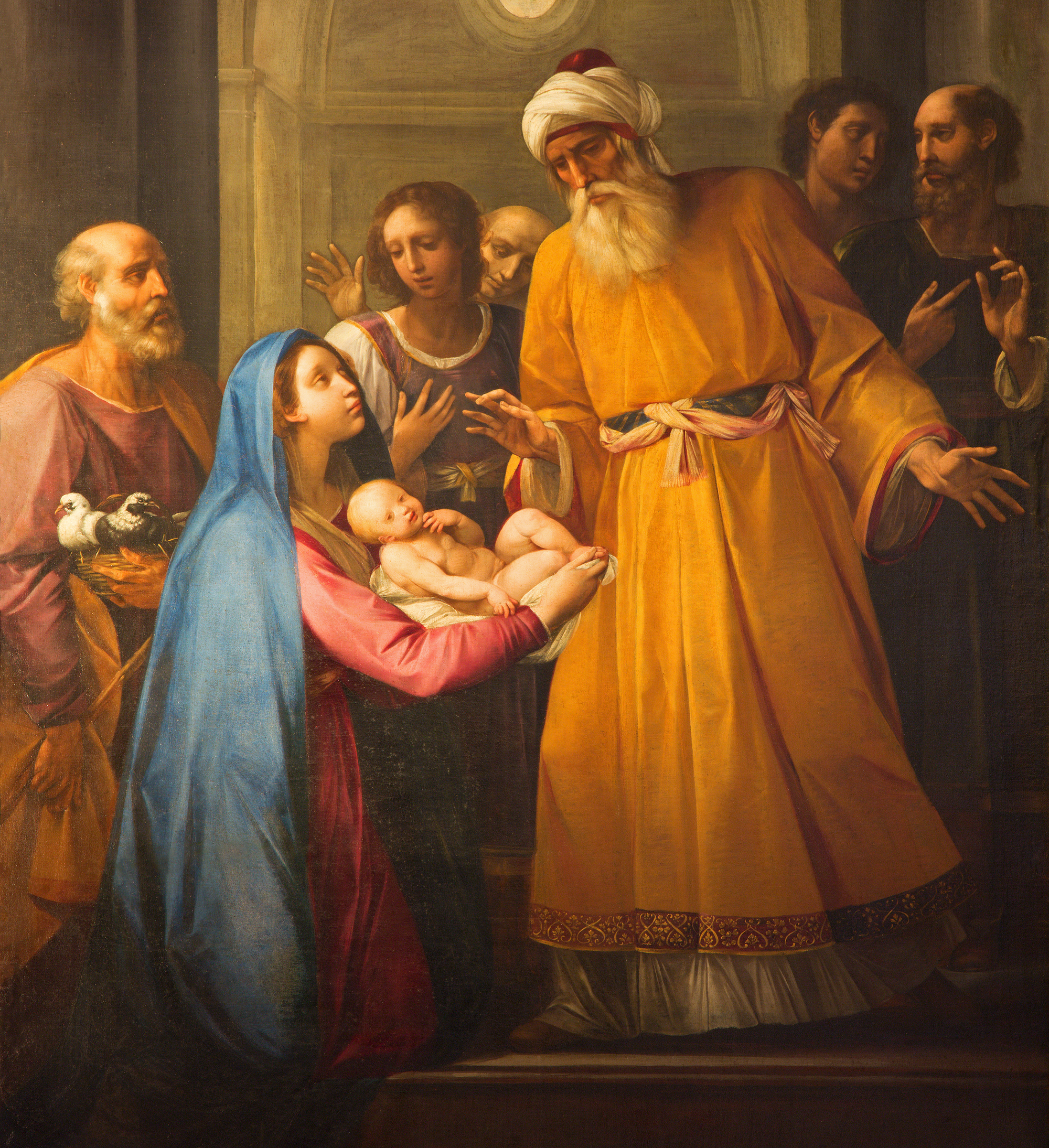 Certains se sont étonnés que Marie se soumette à un rite de purification. Elle, la toute-pure, l’immaculée, a-t-elle besoin d’être purifiée ? Mais la réponse est simple : cette purification rituelle n’impliquait aucune faute morale. Devenir mère n’est pas un péché. La purification de l’accouchée, demandée par la loi de Moïse, n’a pas pour but de laver d’un péché…. mais de faire revenir la mère dans le domaine profane, après qu’elle est entrée dans le domaine sacré de Dieu, quand il a créé une nouvelle vie en ses entrailles. Marie pouvait donc se soumettre à ce rite qui n’impliquait chez elle ni péché ni défaut. D’ailleurs, comme tous les Juifs, Marie et Joseph sont attachés aux coutumes de leurs ancêtres et il ne leur viendrait pas à l’esprit de rompre avec le rite traditionnel.
