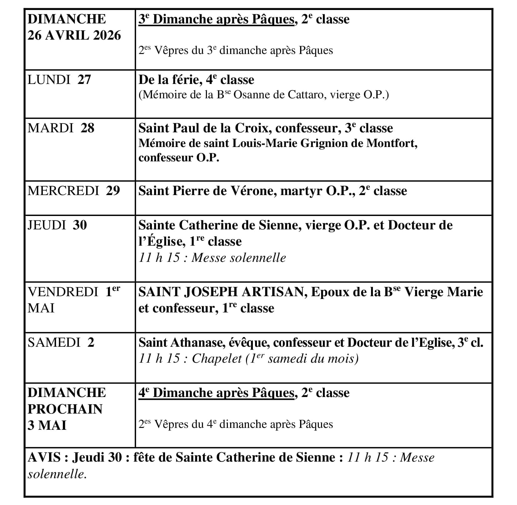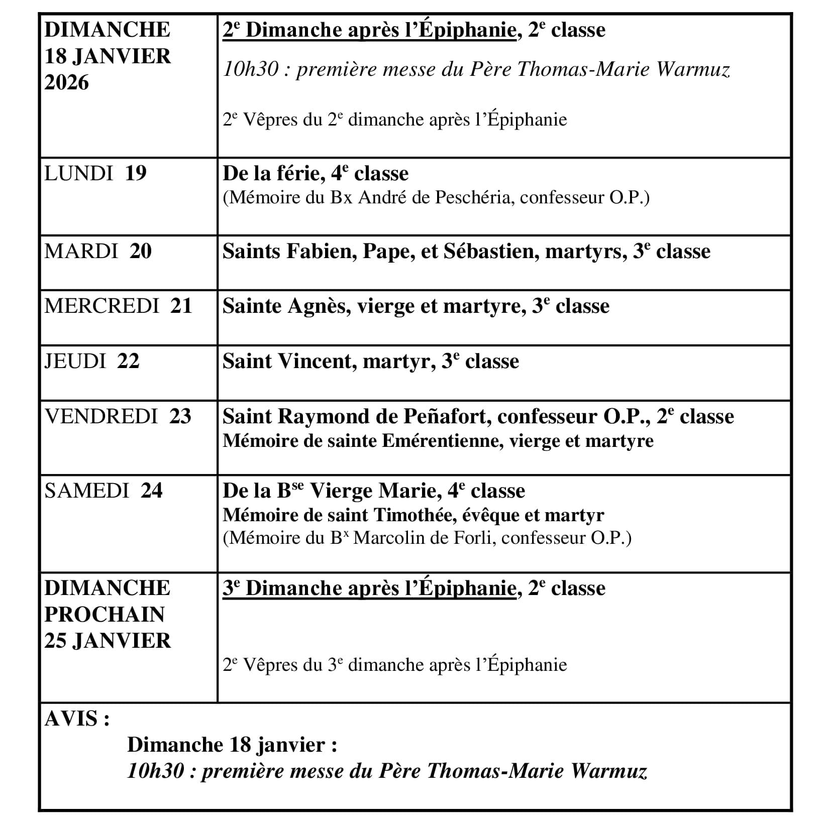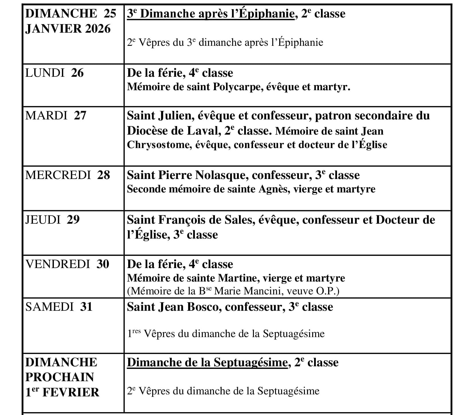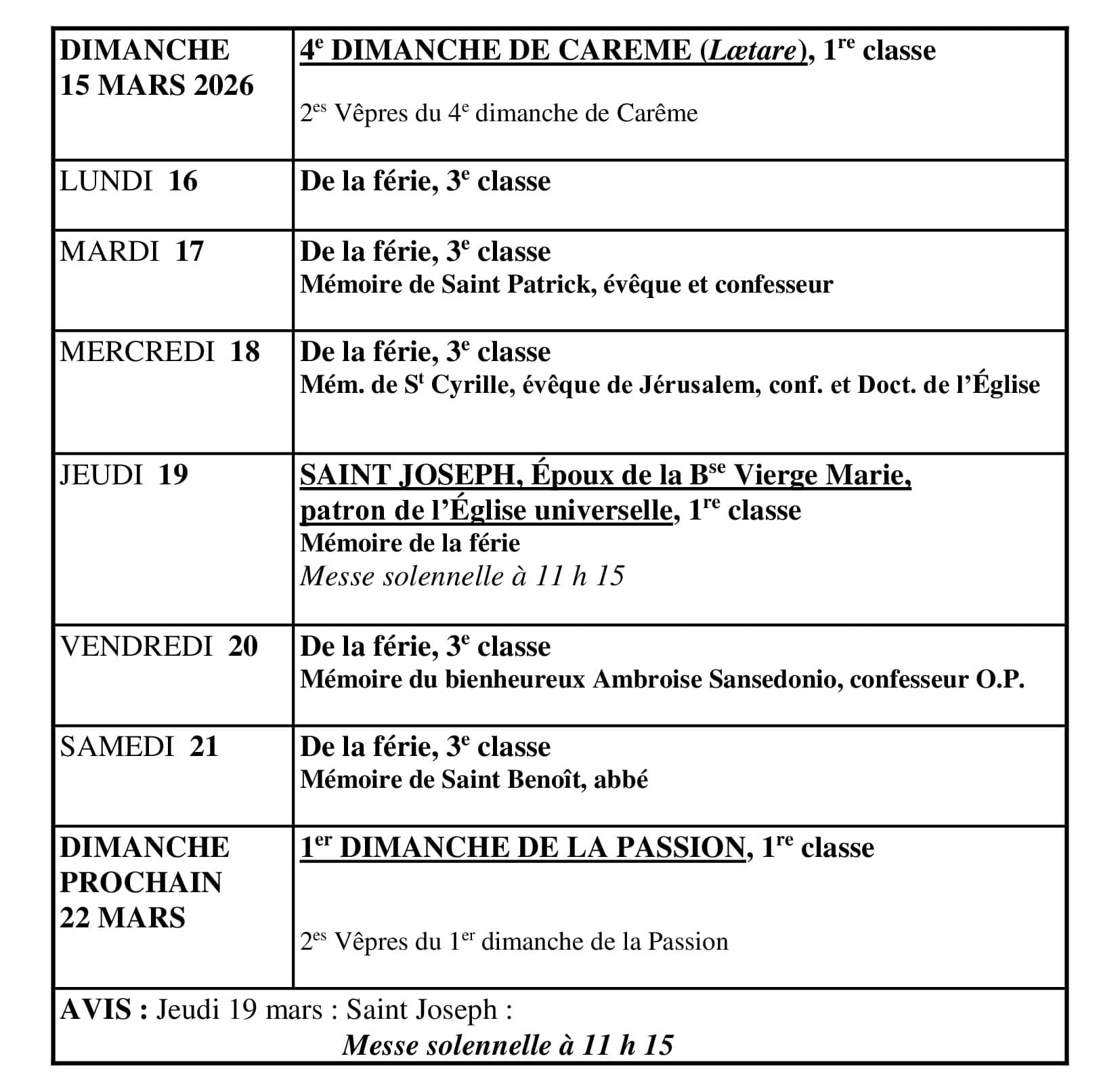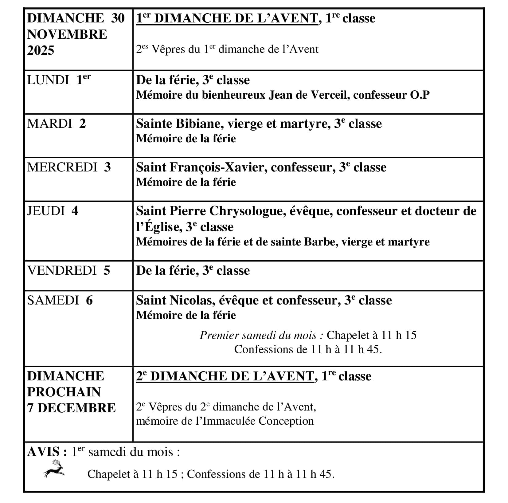 | Dimanches et fêtes d'obligation | Samedi | À tout moment | |