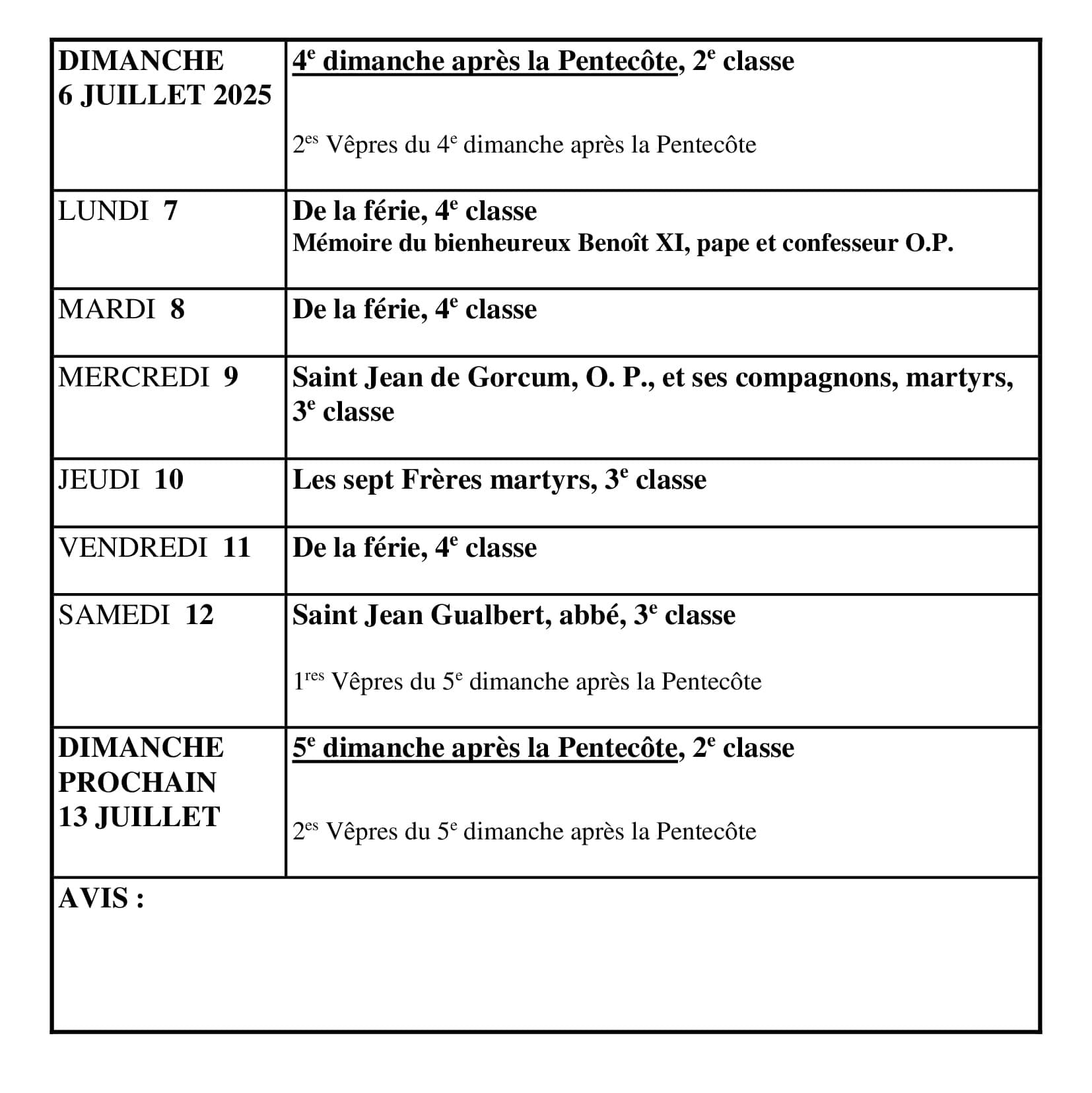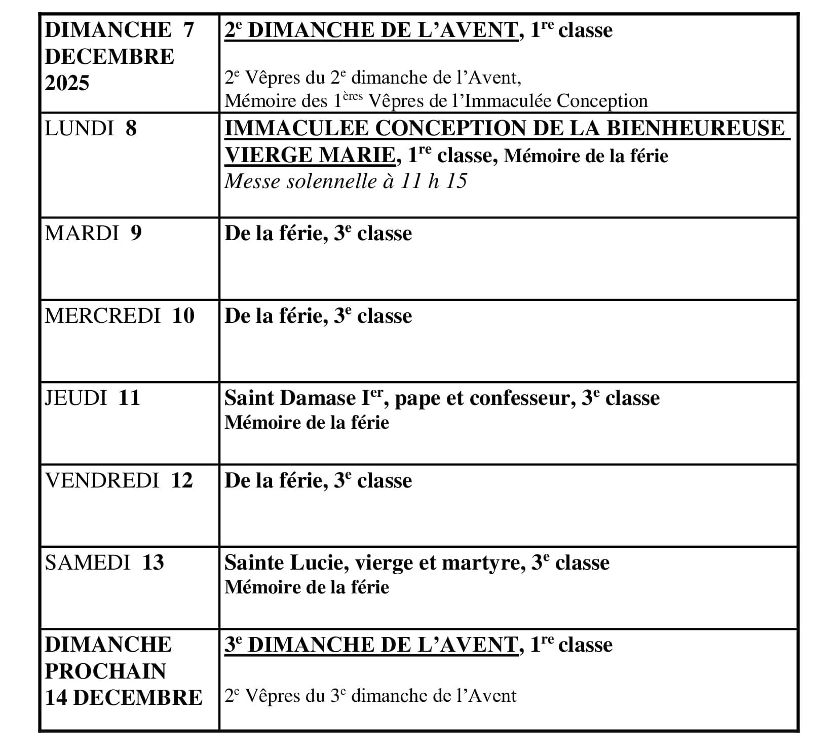 | Messe solennelle | 10h30 | |